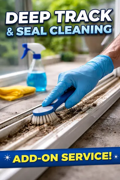 “We scrub, brush, and vacuum built-up dirt from window tracks and seals.”